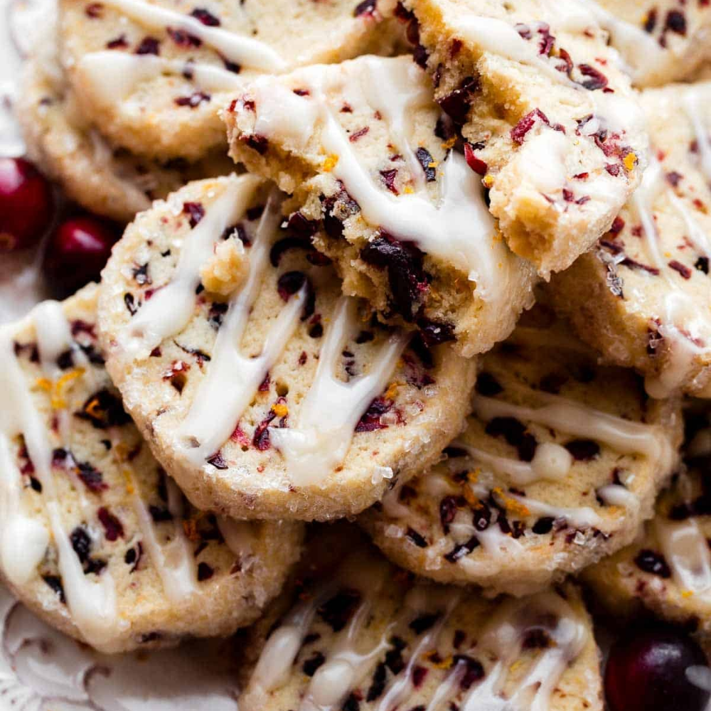 This shortbread style cookie includes dried cranberries and orange zest.