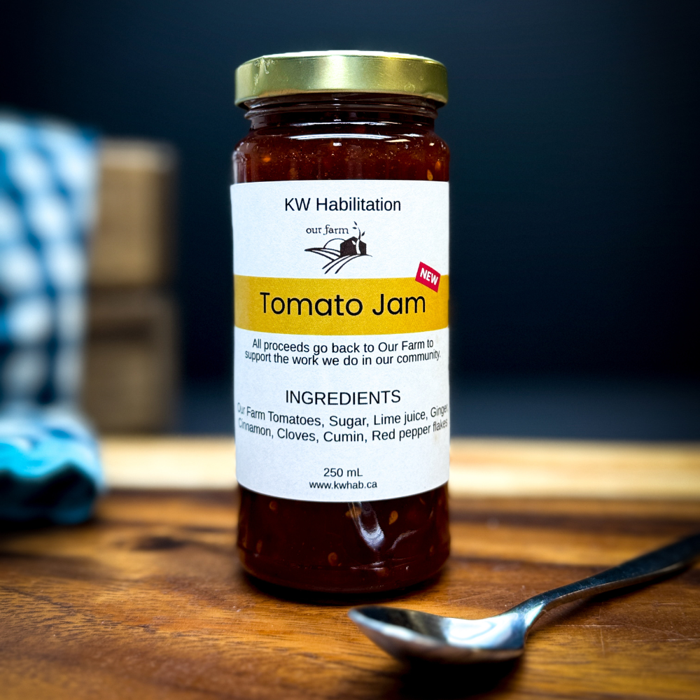 A savory-sweet jam made from farm-fresh tomatoes grown at Our Farm at KW Habilitation. Try it on grilled cheese sandwiches, burgers, or charcuterie — an unexpected delight that turns ordinary into extraordinary.